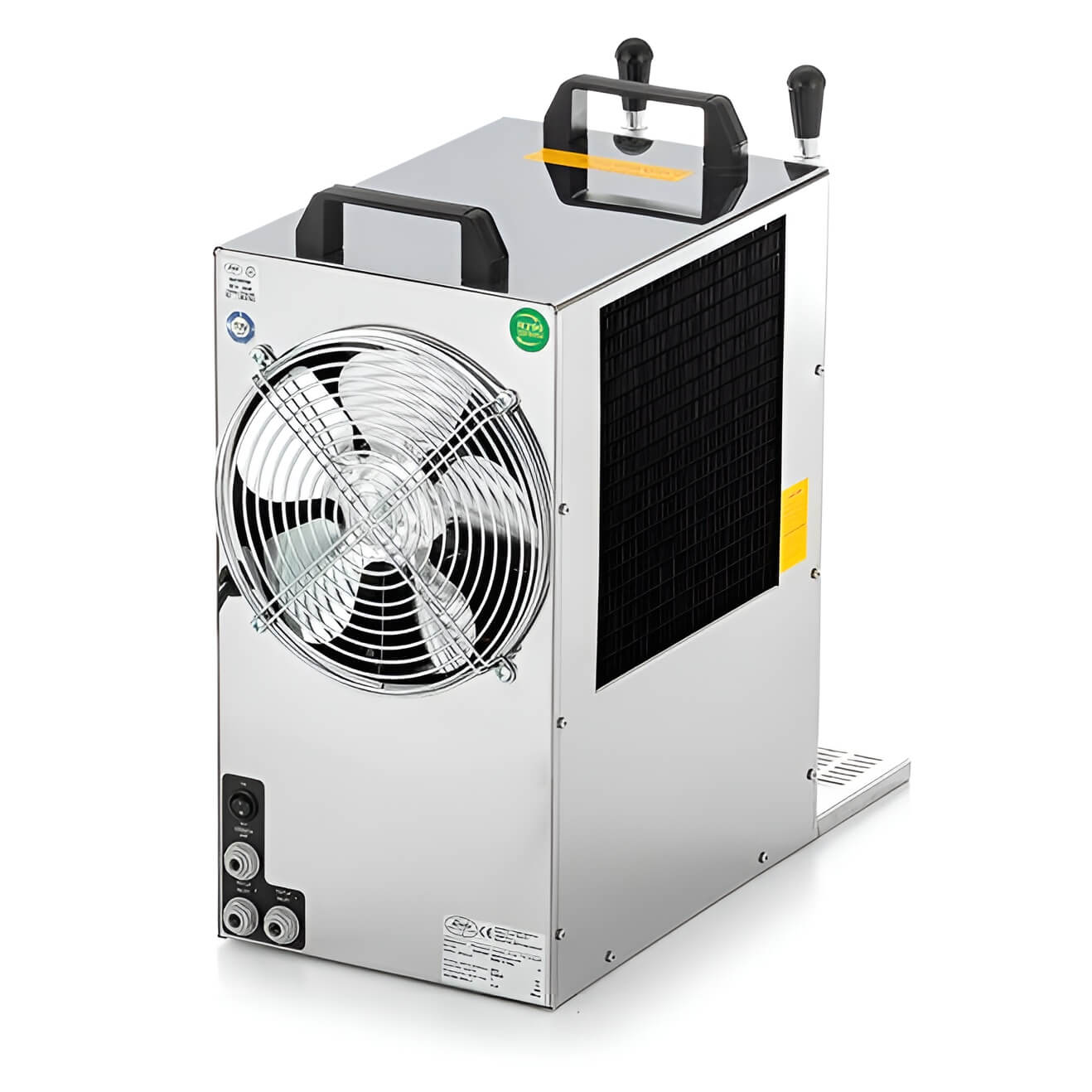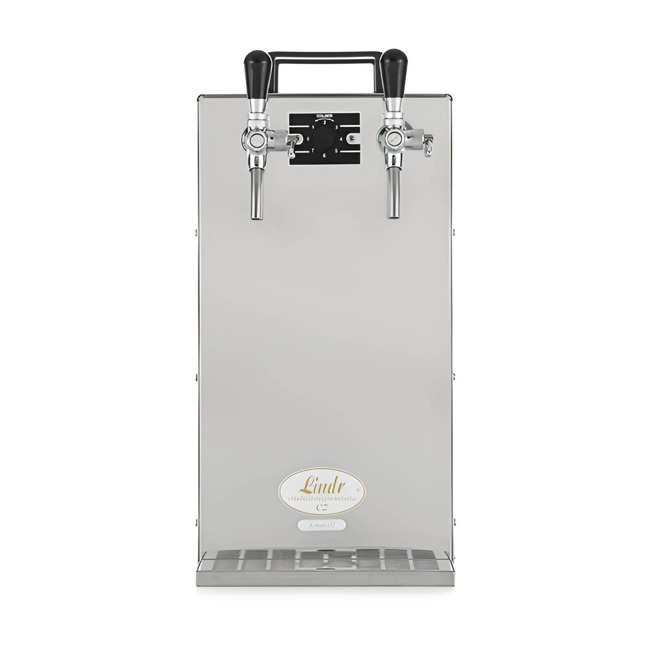 Double tap drinks dispenser with dry cooling technology, built in air compressor. Pouring up to 155-170 L/hr, max 180 L/hr.
